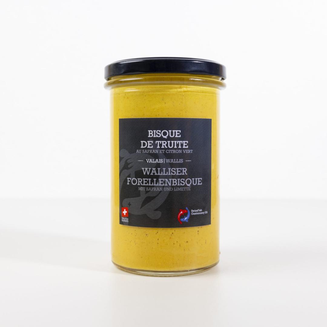Composition (Sans lactose ni gluten): Chair et fumet de truite (Oncorhynchus Mykiss – label Suisse Garantie, pisciculture de Vionnaz), citron vert, amidon de maïs, sel des Alpes, épices, safran.